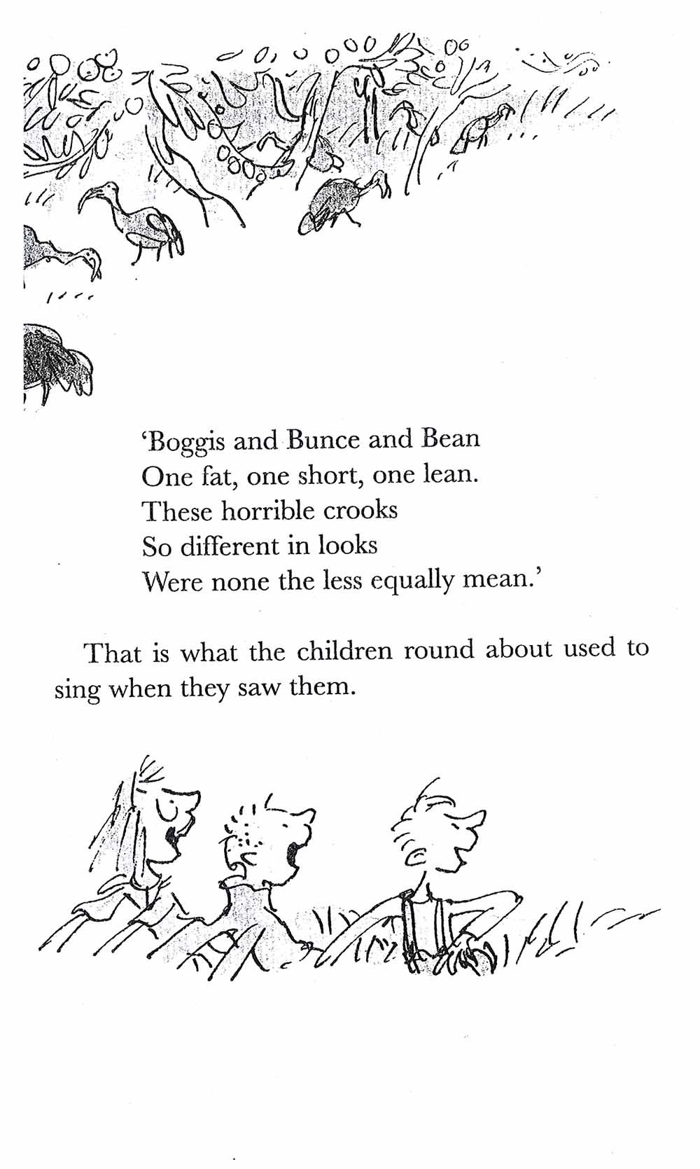 Boggis is an enormously fat chicken farmer who only eats boiled chickens smothered in fat.