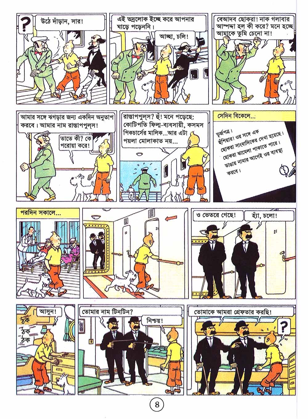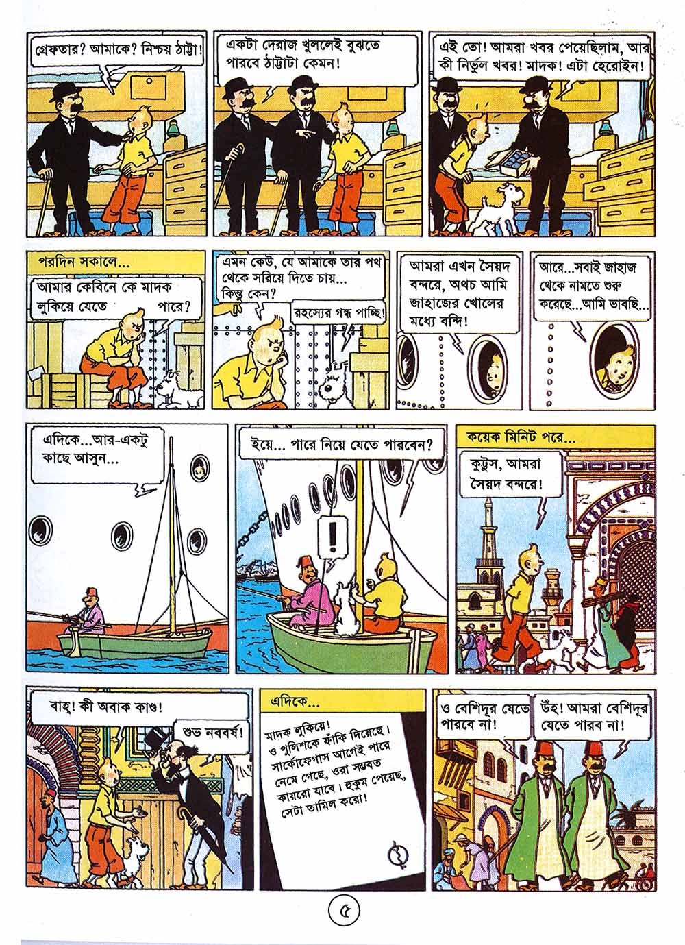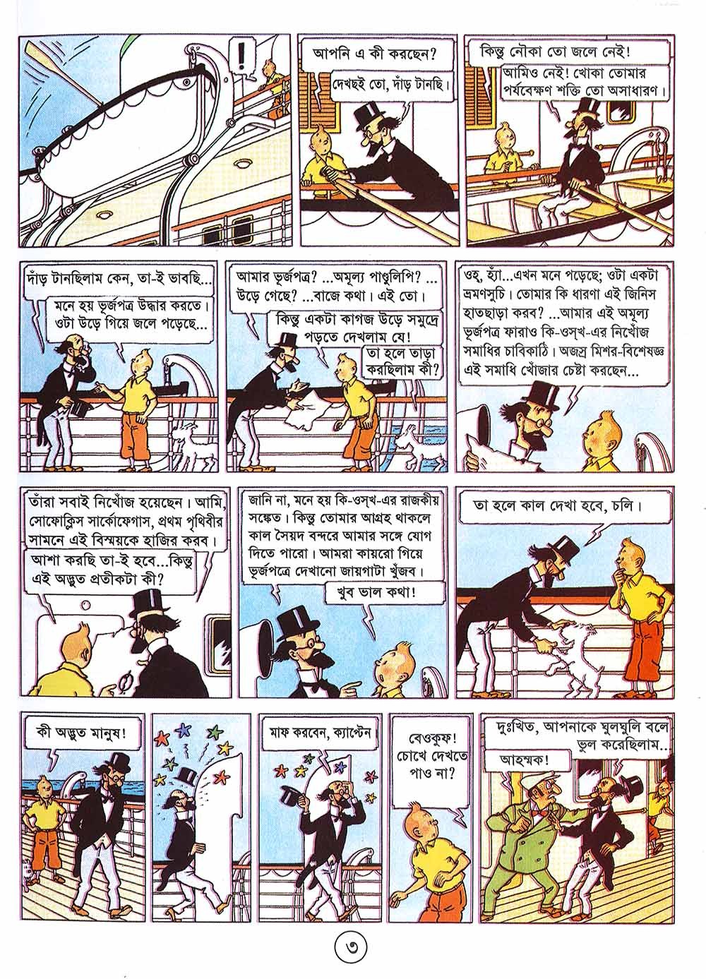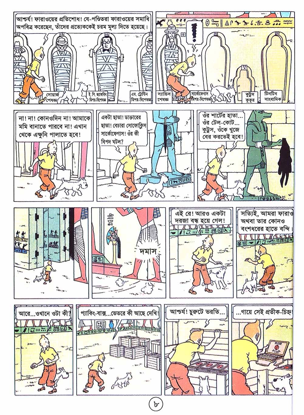 সিগারস অফ দ্য ফারাও (১৯৩৪) ছবিতে টিনটিন নিজেকে একটি মাদক পাচার চক্রে জড়িয়ে পড়ে, যা তাকে ভারতে নিয়ে যাবে। ইতোমধ্যে, তিনি থমসন এবং থম্পসনের সাথে সাক্ষাৎ করেন, দুই জন কুৎসিত পুলিশ যাদের ভূমিকা ক্রমান্বয়ে সিরিজ জুড়ে আরো গুরুত্বপূর্ণ হয়ে উঠবে। টিনটিন, মিশর এবং ভারতের মাদক পাচারকারীদের বিরুদ্ধে লড়াই করছে, শীঘ্রই তার মুখোমুখি হবে এমন কিছু চরিত্রের সাথে সাক্ষাৎ হবে, ভিলেন যেমন অ্যালান থমসন অথবা রহস্যময় রাস্টাপোপুলোস এবং তার ভবিষ্যৎ সঙ্গী যেমন সেনোর অলিভেইরা।