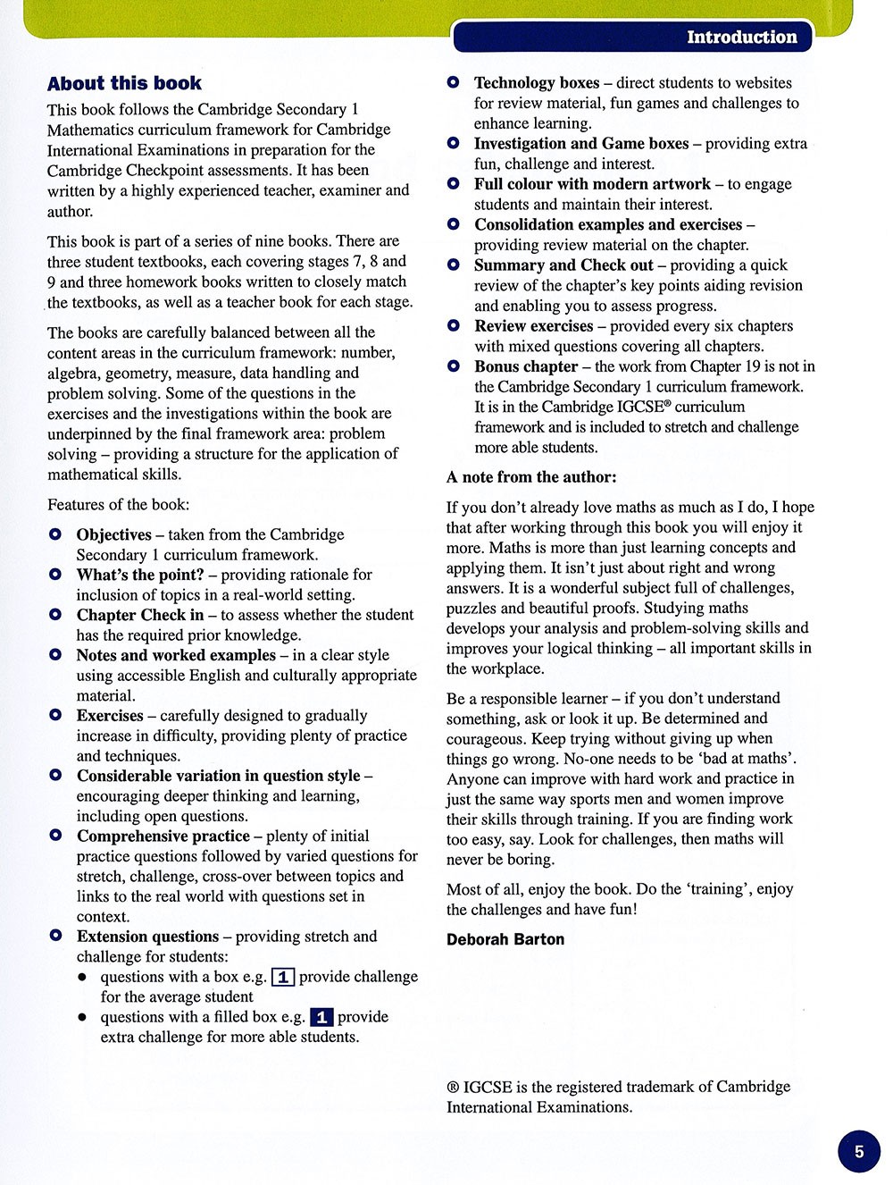 Build a strong foundation for success in the Cambridge Checkpoint tests and ensure your students get the challenge and extension they need to achieve their best in the Cambridge IGCSE. This course matches the new framework and will rigorously prepare students for the strongest achievement at Checkpoint level and beyond.
