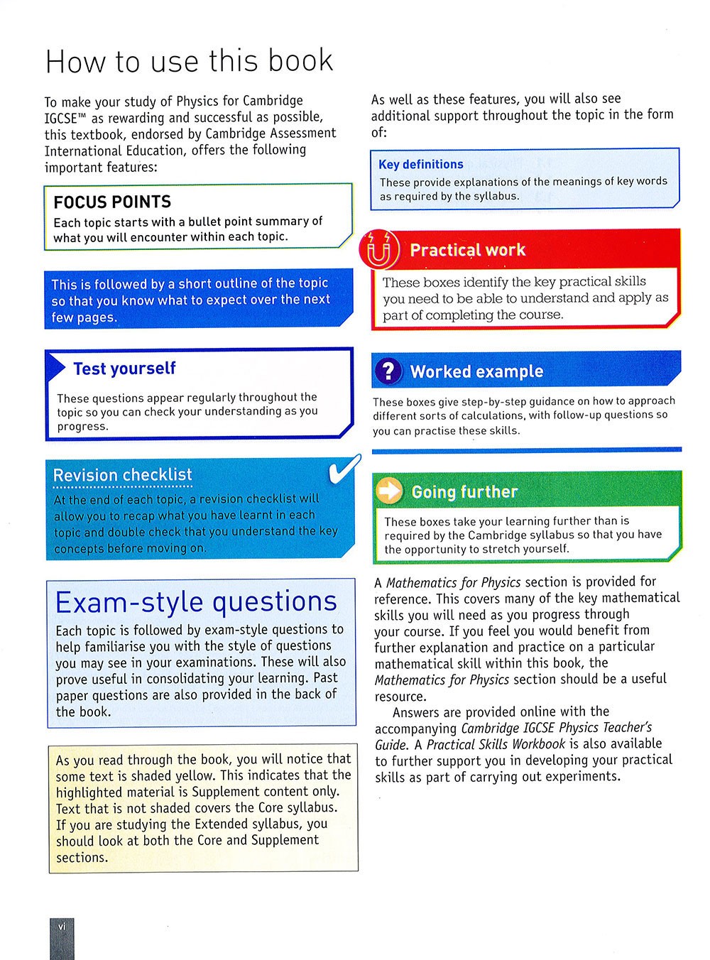- Navigate the syllabus confidently: core and supplement subject content flagged clearly with introductions to each topic outlining the learning objectives and context.