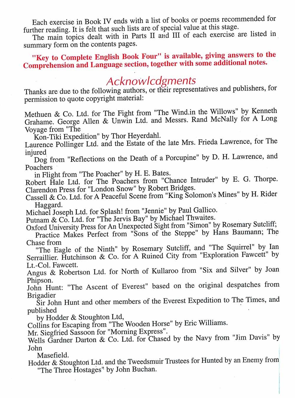 COMPLETE ENGLISH This six-book English Course provides interesting and rewarding work to meet the demands and stretch the abilities of children from 6 - 12 years old. Each book contains stimulating and well-written extracts of prose and poetry from a wide variety of authors. These are followed by work on comprehension, language (spelling, vocabulary, and dictionary work). and topic research.