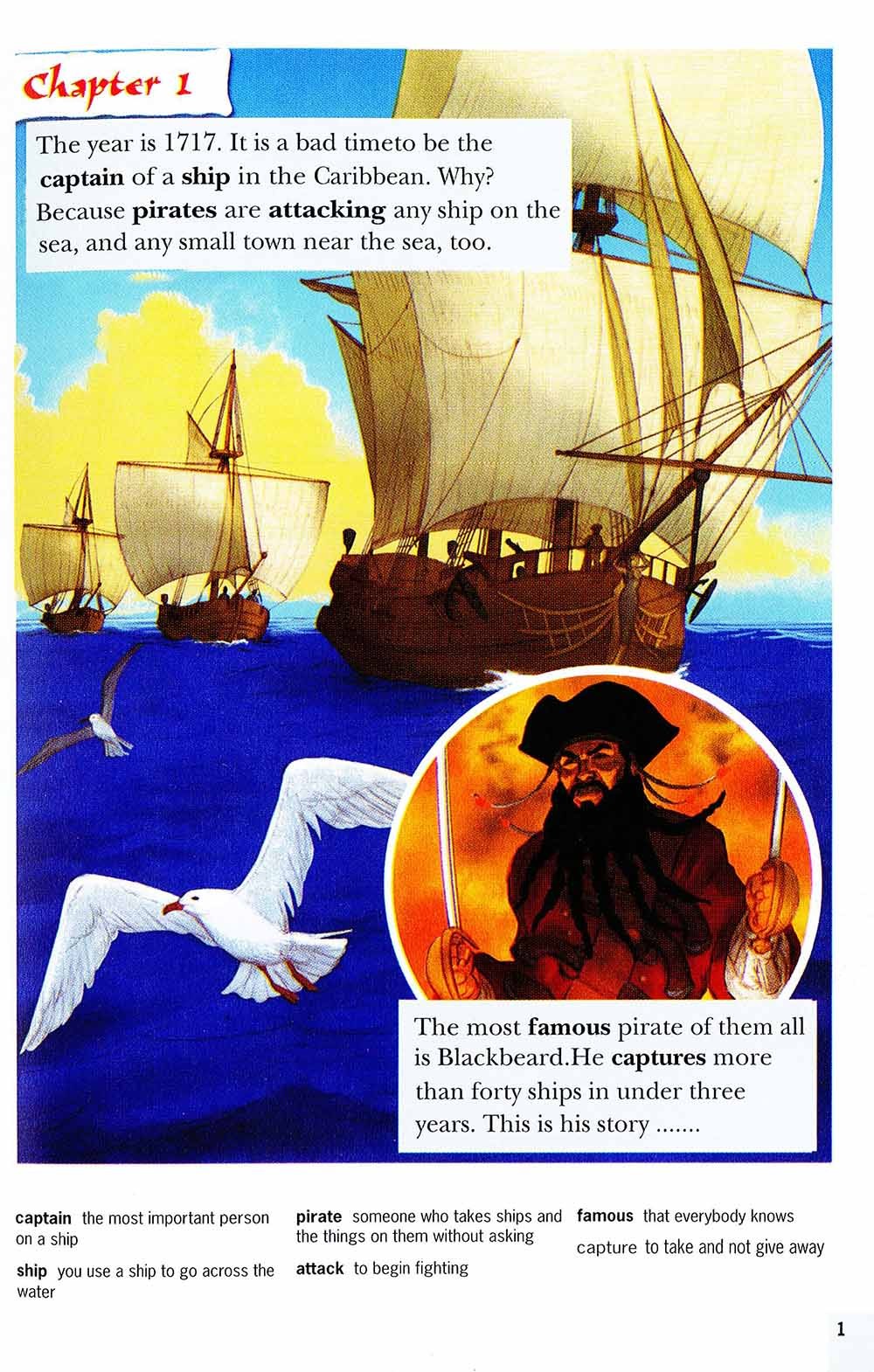 The year is 1717. It is a bad time to be the captain of a ship in the Caribbean because of pirates. The most frightening pirate on the sea is Edward Teach, or 'Blackbeard'. 'The Governor of Virginia wants us all dead!' Blackbeard thinks. 'But can he kill me - the most famous pirate in the Caribbean? No!' This is his story...