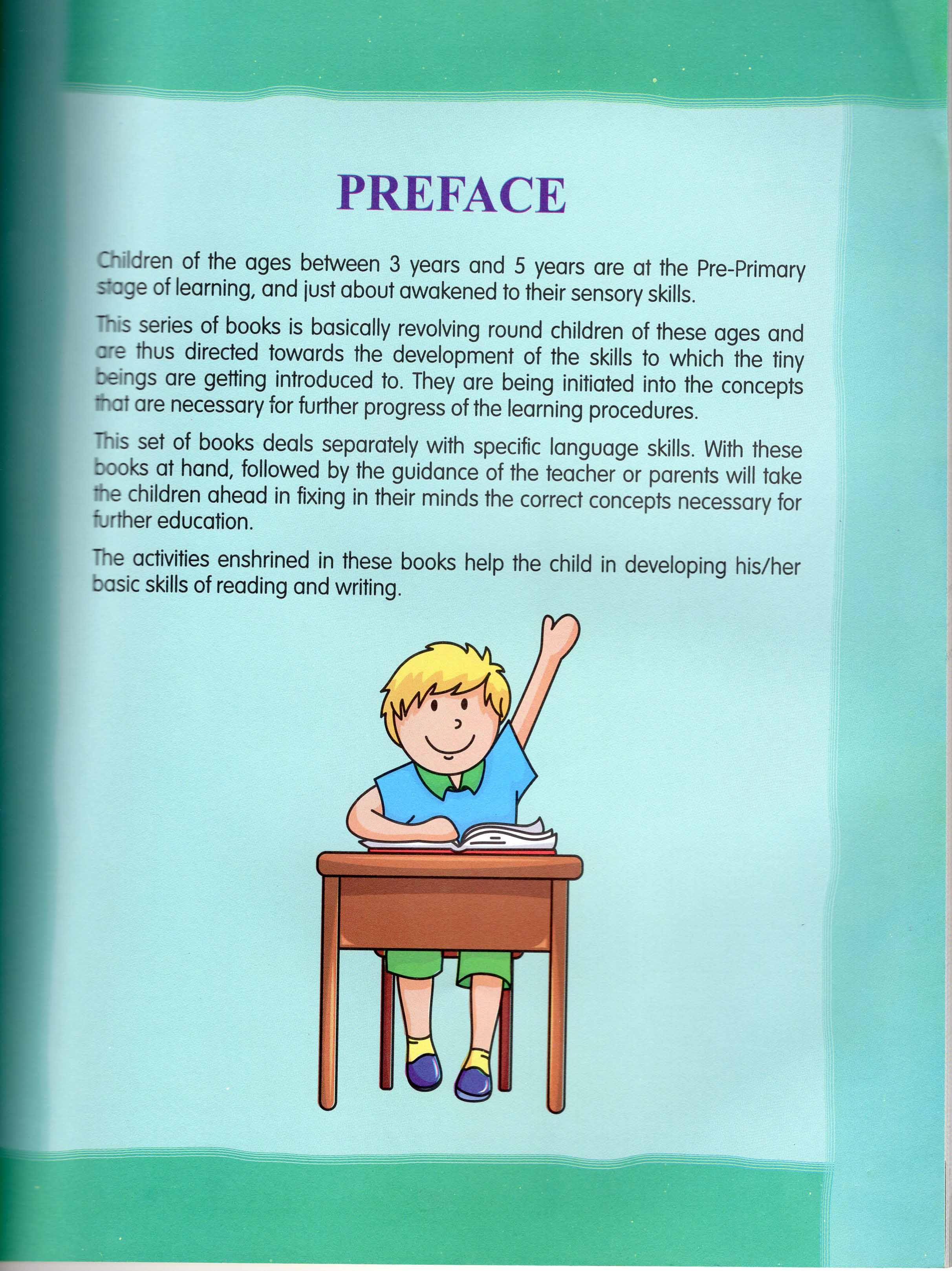 Popular Children's Books Series comprises of a set of seven workbooks.These have been planned out to be interesting and educative for children of the ages of 3 to 5 years. The series cover the basics of language that make a firm foundation to the education process. When at this age the skills are acquird with clear concepts, there will never be a language problem ahead in life. The books include: