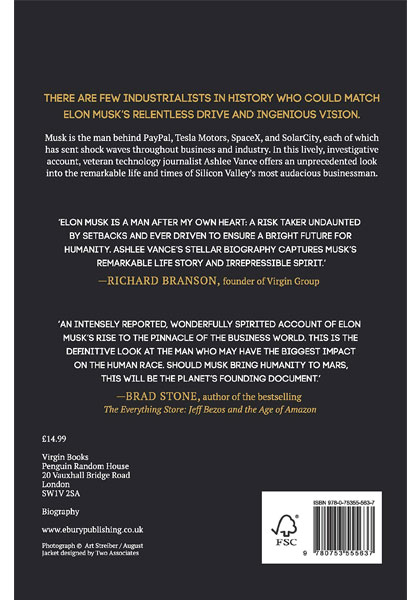 Elon Musk is the Steve Jobs of the present and the future, and for the past twelve months, he has been shadowed by tech reporter, Ashlee Vance. Elon Musk: How the Billionaire CEO of Spacex and Tesla is Shaping our Future is an important, exciting and intelligent account of the real-life Iron Man.