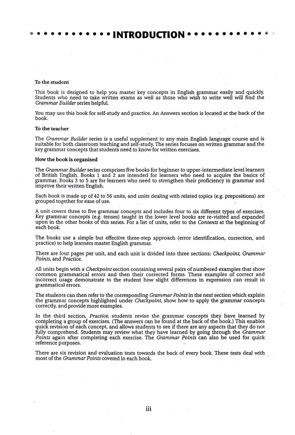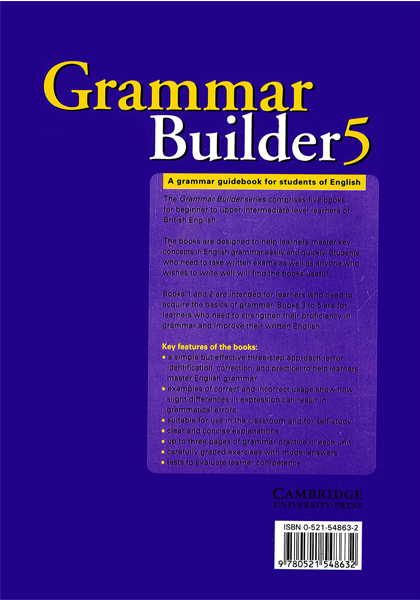 These books are especially useful for students taking written exams and anyone who needs to write well in English. Grammar Builder takes a simple but effective three-step approach (error identification, correction and practice) to help learners master English grammar. Real examples of correct usage and common mistakes made by learners introduce grammar items in each unit and show learners how subtle differences can result in grammatical errors.