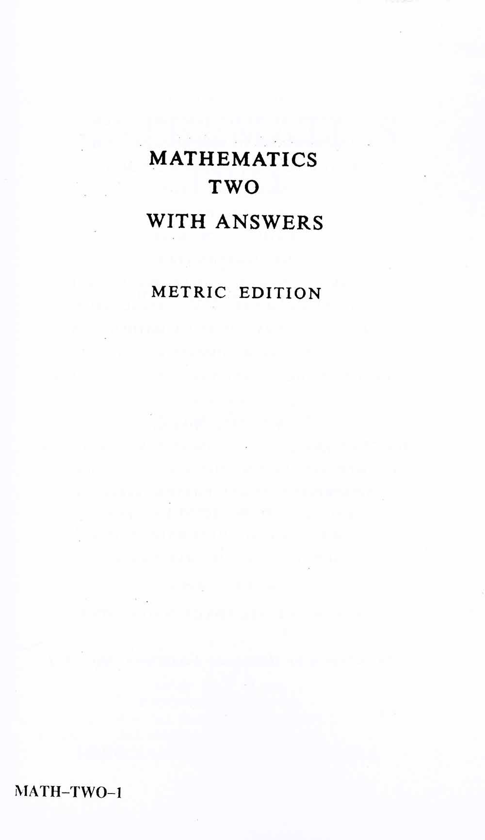Mathematics Two (Metric Edition)