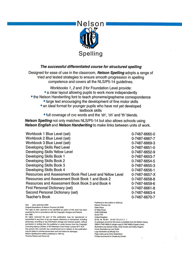 Nelson Spelling Workbook 1 Blue Five