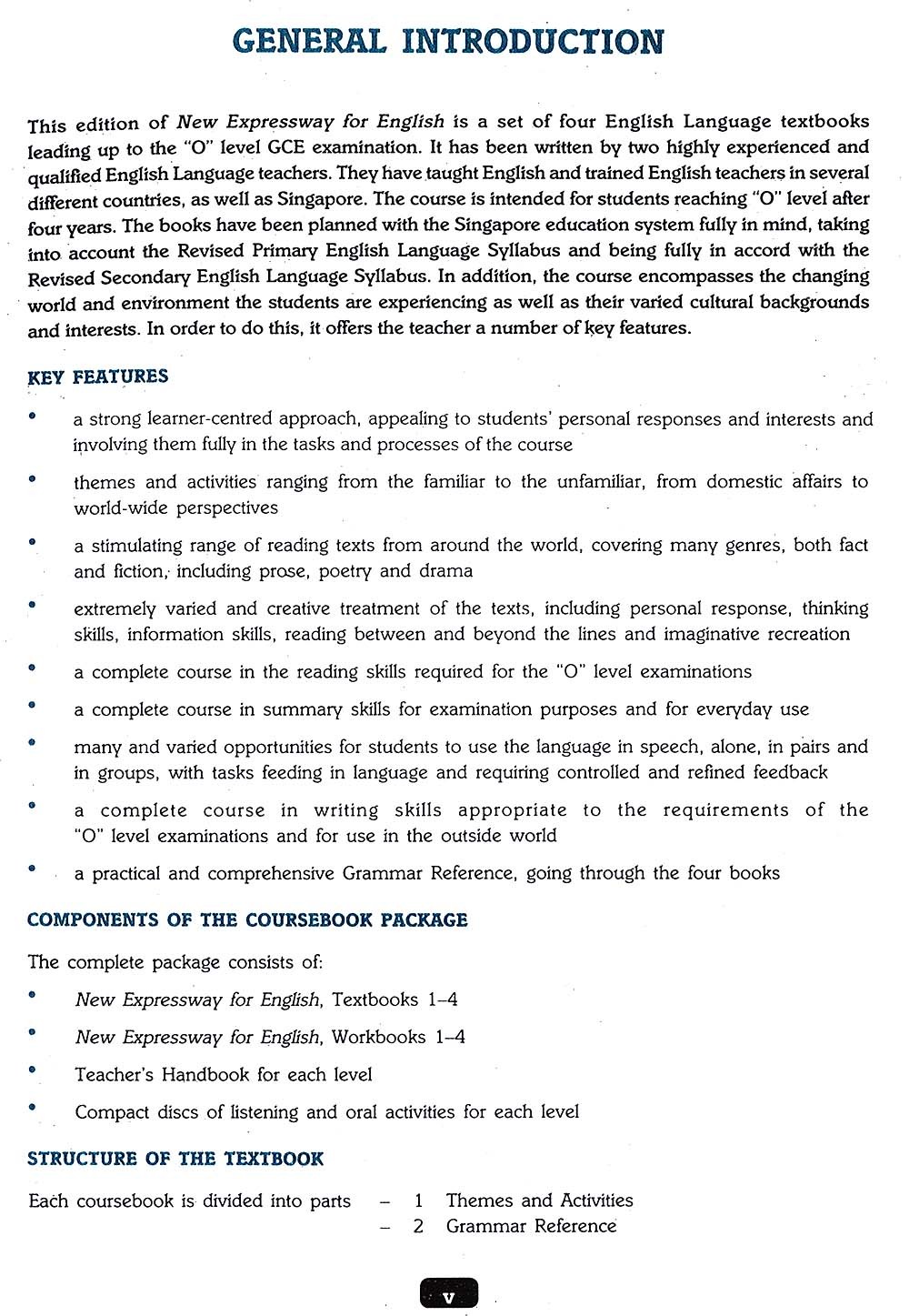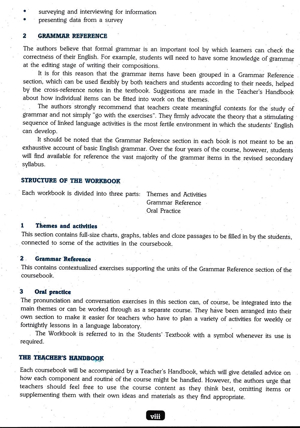 Four Student's Workbooks which include materials for completion, e.g. charts, diagrams and tables, contextualized exercises to supplement the Grammar Reference section and oral practice materials. Audio-visual materials, i.e. compact discs containing listening activities and oral practice materials.