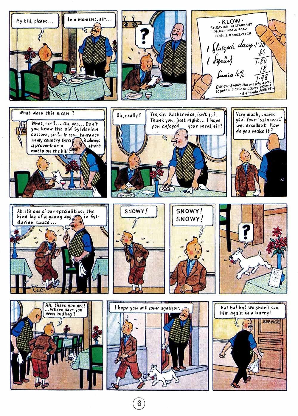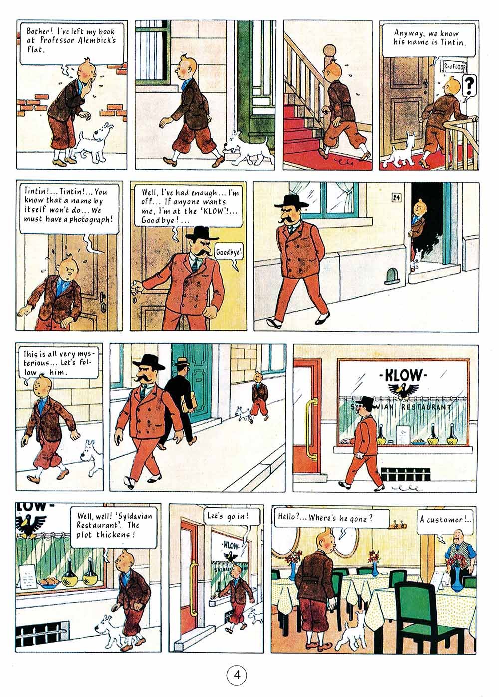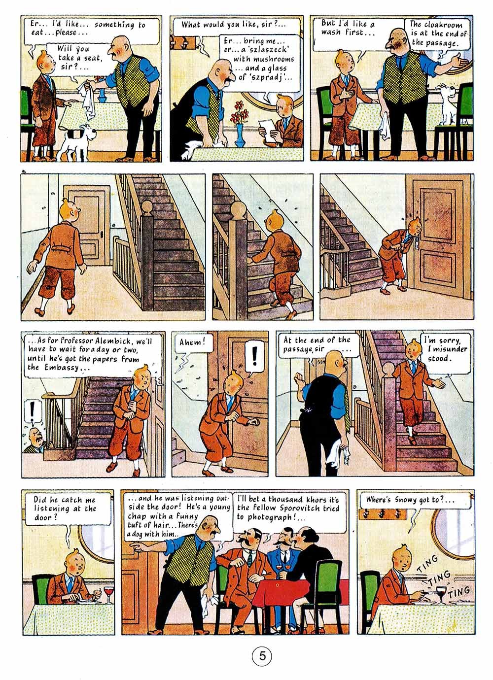 King Ottokar's Sceptre Created in 1939, this book is most impressive and has its sights on Germany. Tintin finds a brief-case on a park bench and this leads him to Prague, then to Syldavia. He will save the Kingdom from being overthrown by a fascist "coup d'état".