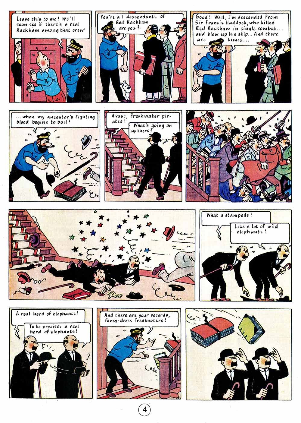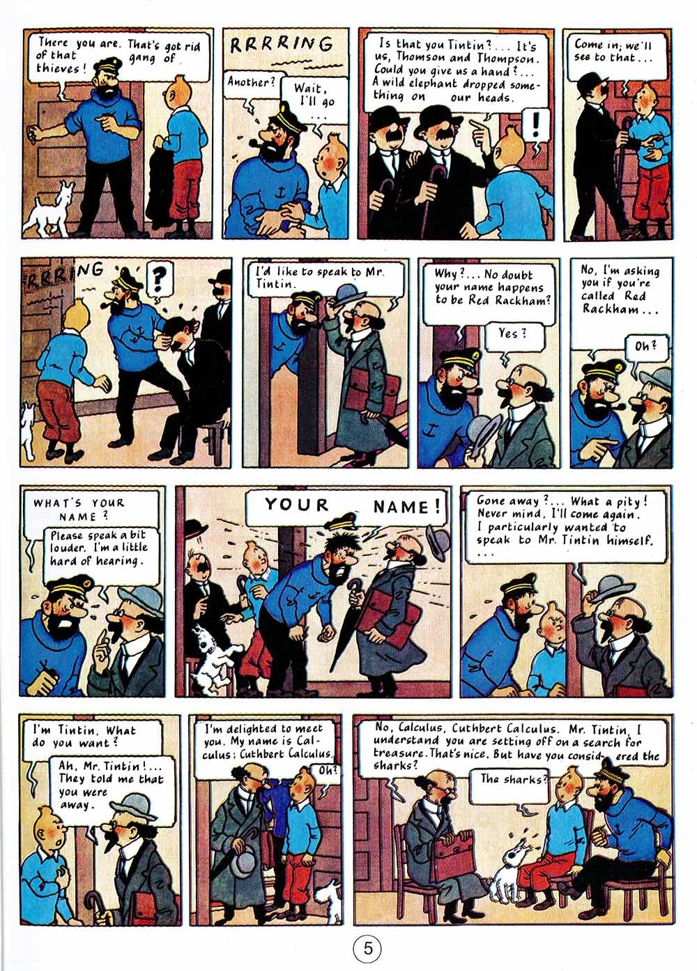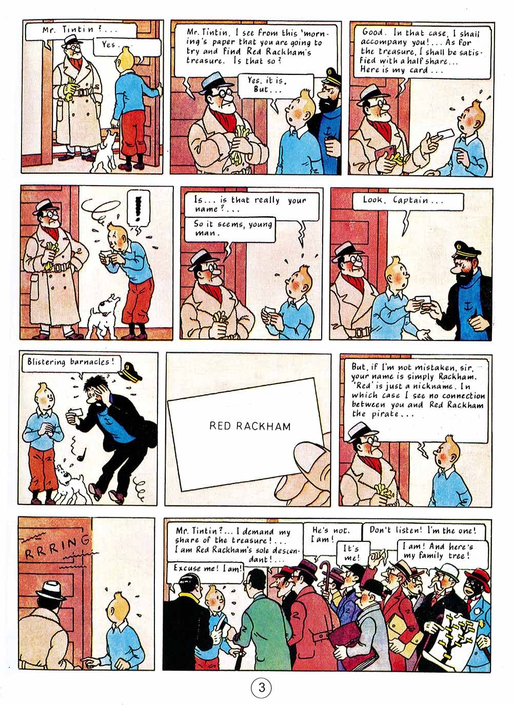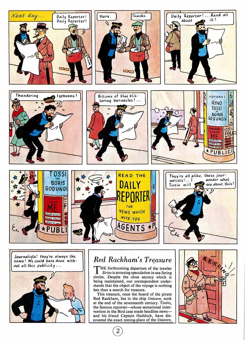 Red Rackham's Treasure In Red Rackham's Treasure (1944), sequel to The Secret of the Unicorn (1943), Tintin and the Thom(p)sons accompany Captain Haddock on a journey in the footsteps of the Captain's illustrious ancestor, Sir Francis Haddock. The parchments discovered in the previous adventure are in fact a treasure map pointing the way to the hidden gold and jewels of a notorious pirate, Red Rackham. A new character, named Professor Cuthbert Calculus, will prove invaluable in the search for the lost treasure; by the end of the adventure Calculus will also help Captain Haddock to acquire his family's ancestral home, Marlinspike Hall. This story is full of twists, turns and surprises, not least the moment when Professor Calculus demonstrates a new type of machine for underwater exploration...