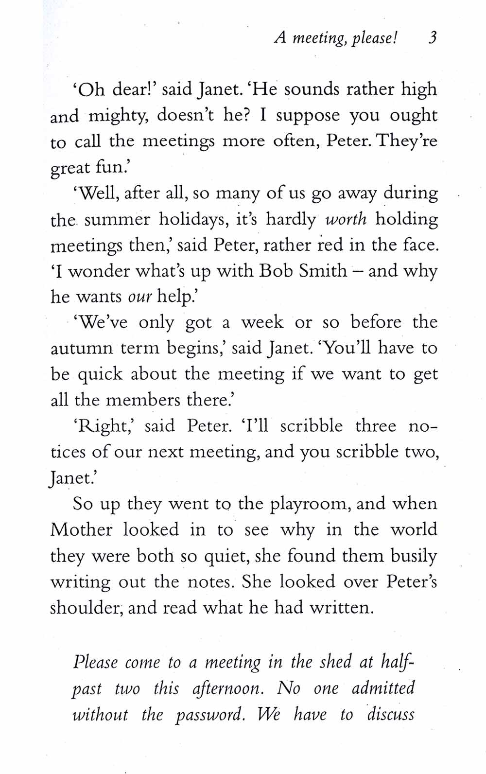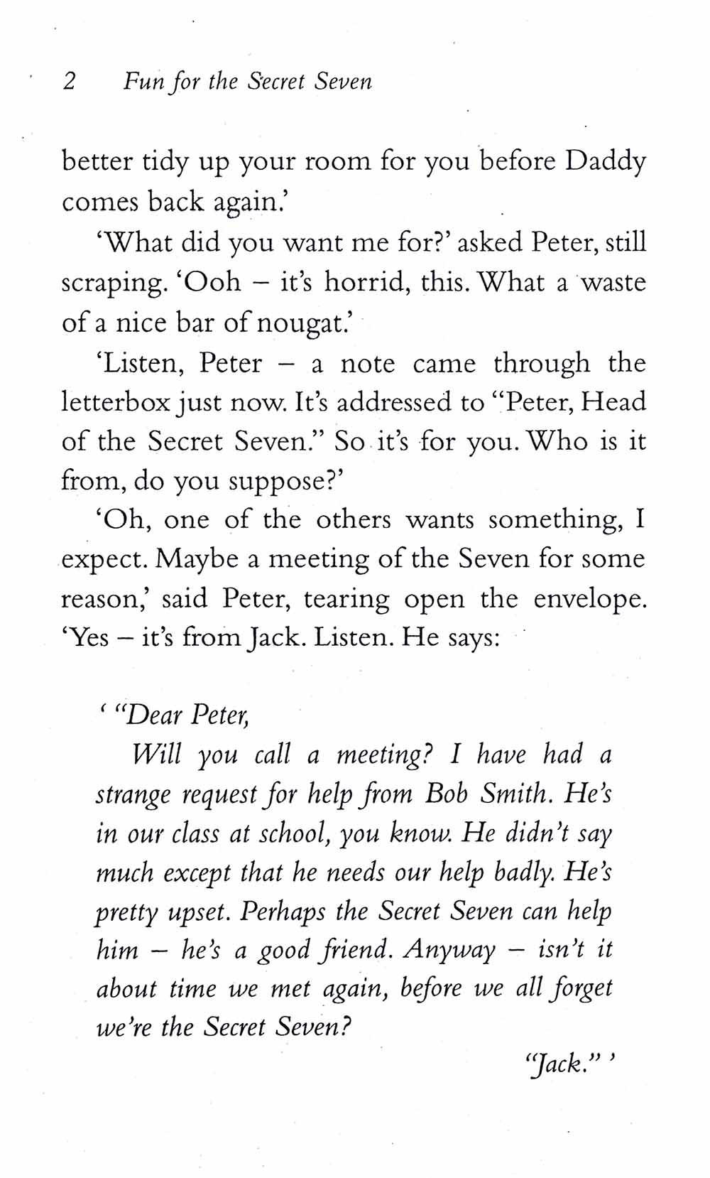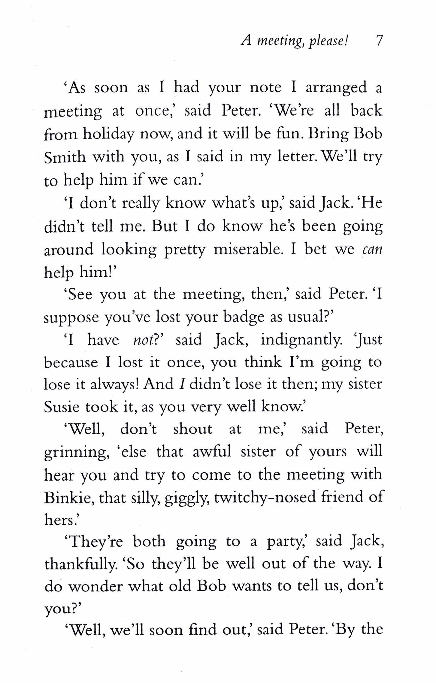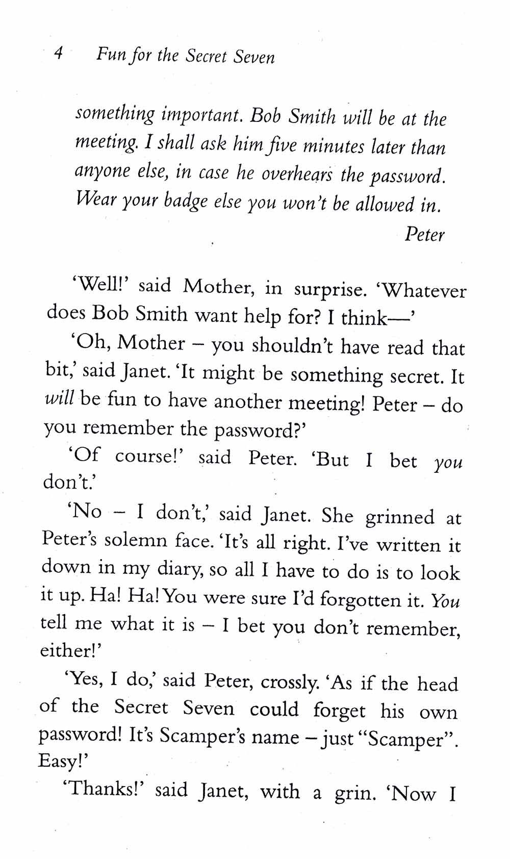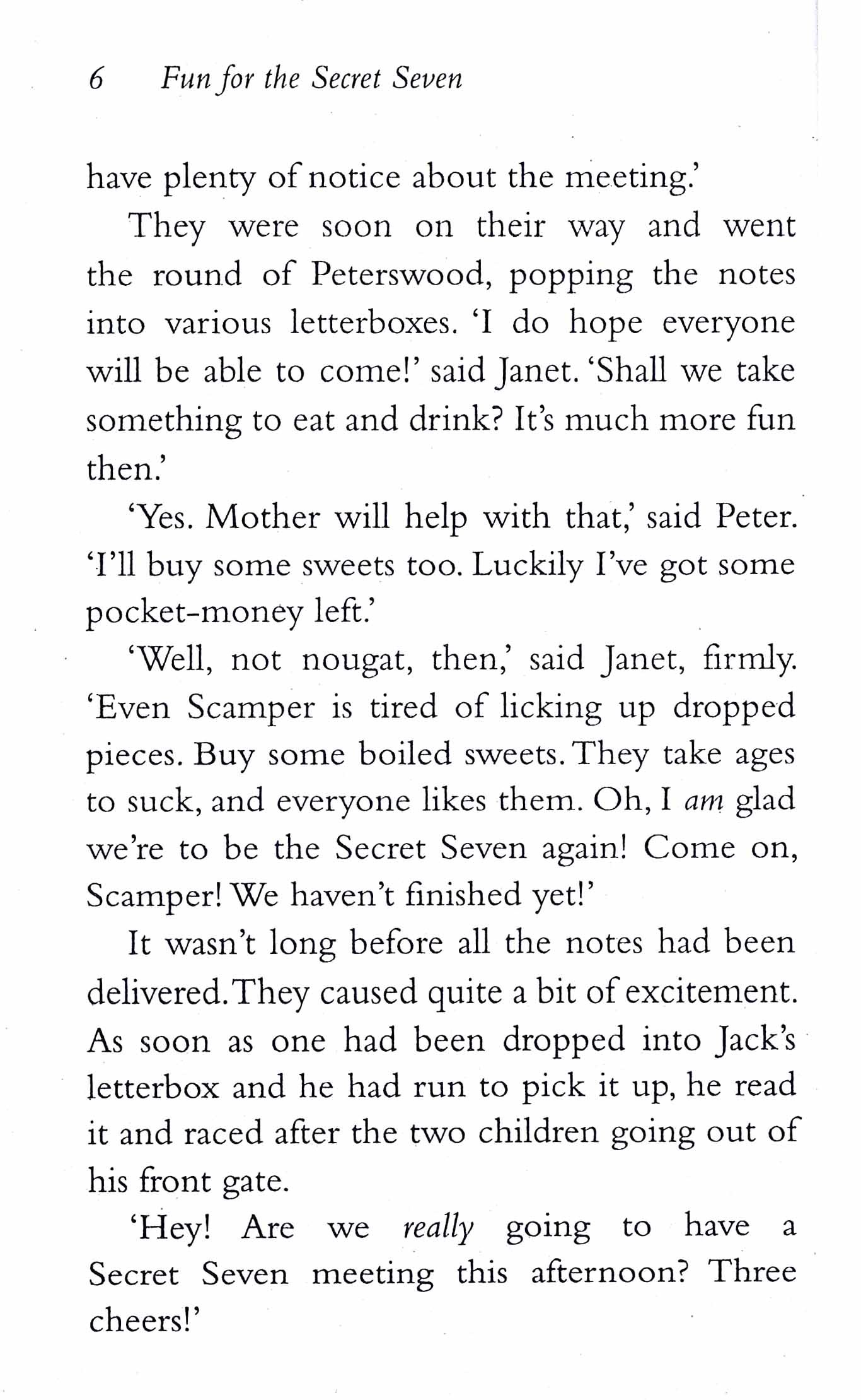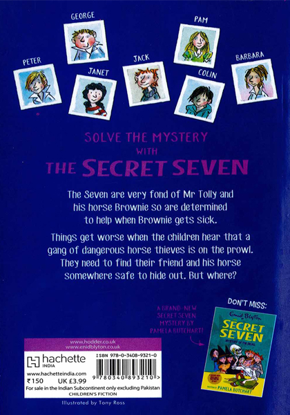 In book five, a sinister-looking man gets George in trouble with the police. The Secret Seven are outraged. Spying on him, the gang are certain he's bad news, but what exactly is he up to?They need to investigate, and solve the mystery, once and for all